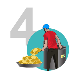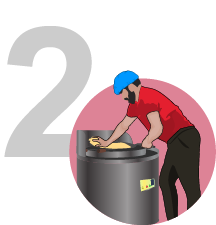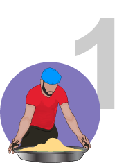 The dough is then placed in a traditional Bikaneri equipment called a "Jharra"which is used to give the bhujia its proper thin cylindrical shape.
