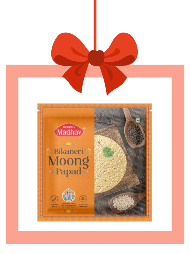 Our Delicious Range AwaitsFrom spicy Namkeen to crunchy Papad and mouth-watering Sweets, explore the authentic taste of Bikaner with Madhav’s flavorful collection.