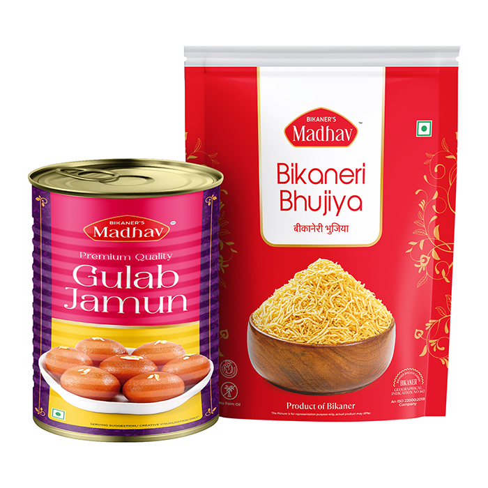 • Classic Sweet & Namkeen Combo: Gulab Jamun 1Kg and Bikaneri Bhujia 400gm