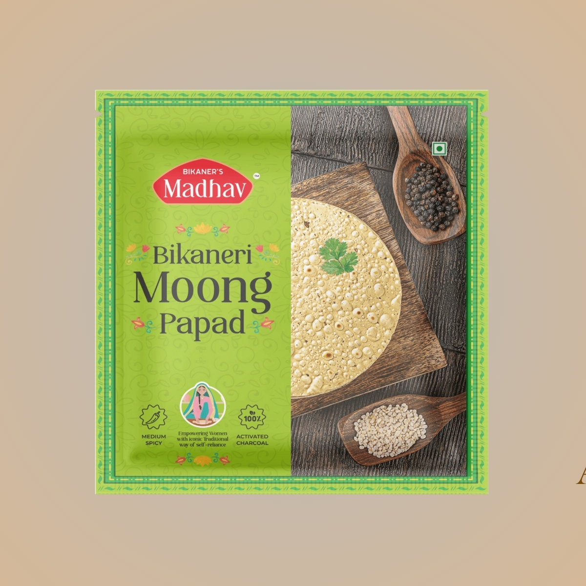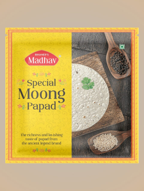 Discover the exquisite taste of Madhav Masala Papad, an authentic Indian snack made with Black Lentil Flour and Split Moong.